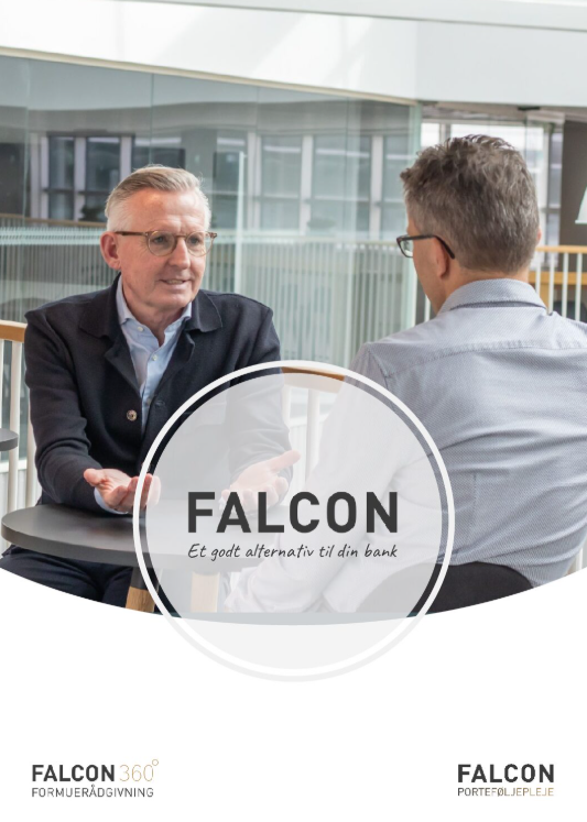 I vores folder kan du læse om Falcon, om Falcon Porteføljepleje og om Falcon Formuerådgivning.